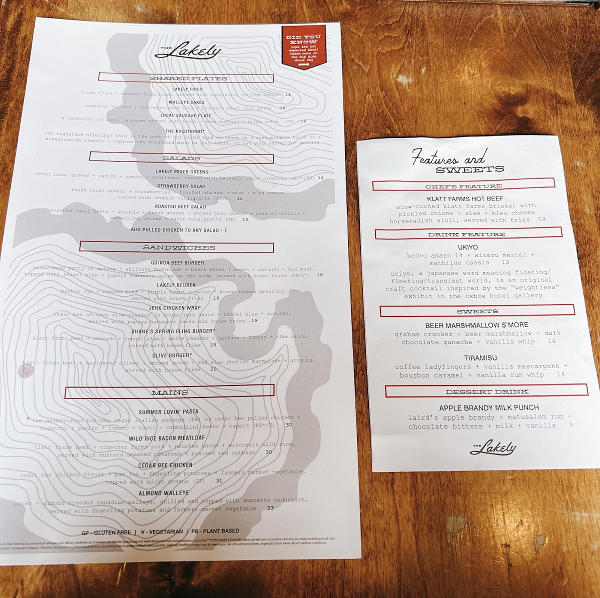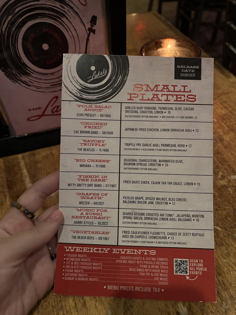 The Lakely Menu